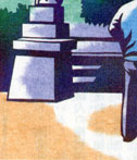 お茶と‘ころ柿’で知られる宇治田原町から滋賀県と境を接するあたり、峠の近くの猿丸神社を訪ねました。 ゆるやかにそしてはるかに連なる静かな森の中の小さな社は、「奥山にもみじふみわけなく鹿の…」という百人一首の歌で知られる猿丸太夫を祀る神社として知られています。また“コブとり”の霊験あらたかとのことで、 現代のコブ—“ガン封じ”の信仰をあつめています。毎月十三日の例祭には遠く九州からまでバスで大勢の人がやってくるとのことでした。 茶畑のなだらかなカーブ、点在する朱いすだれのようなころ柿の木、木の間をすかしてみれば小さなけものたちがこちらの方をのぞいていてくれるような…そんな牧歌的な風景の中に佇めば緊張する心も解きほぐされ、現代人の誰もが持つであろう心のガンも、すっかり消えてしまうような気がします。 太夫隠棲の地や墓といわれるものまであったとのことですが、現在それをしのばせるものはなにもありません。 (切り絵と文 川越 義夫)