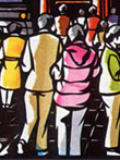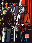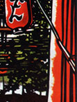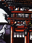 「伏見稲荷大社」—東山三十六峰の最南端、標高232メートル、全山が稲荷信仰の対象。山城国に造都以前先住民からの神奈備信仰を継承した秦氏が、この地に稲荷大社を建立したという。(「山城国風土記」の逸話) 稲荷は伊禰奈利(イネナリ・稲生)と古文にあり元は農耕神、今では商売繁昌の神様として一般化して、正月三ヶ日は大変なにぎわいをみせています。 (切り絵 渡辺 勝)